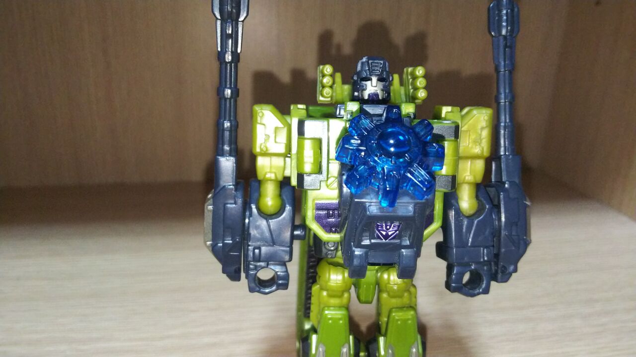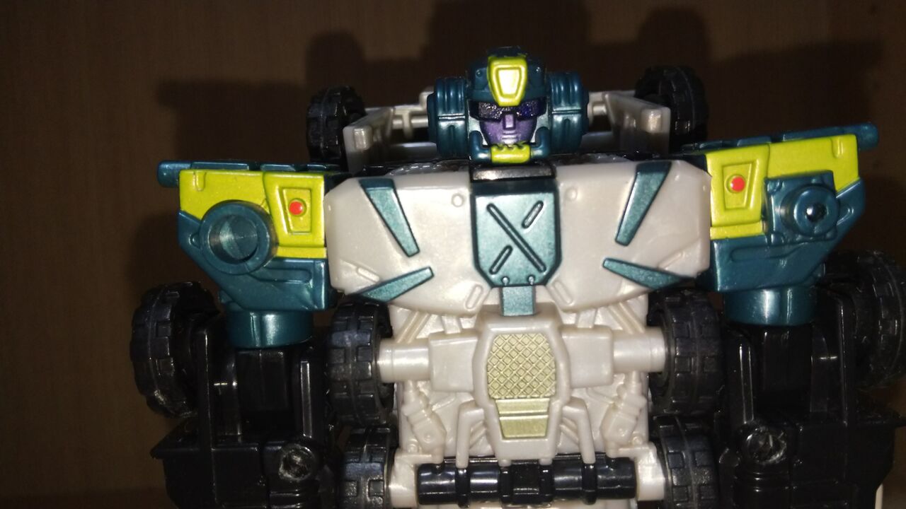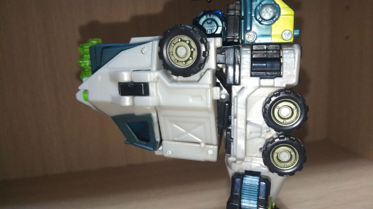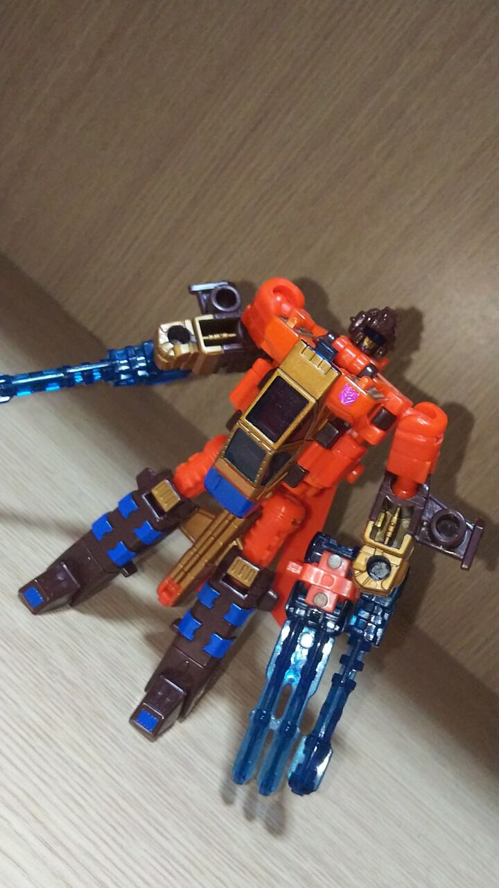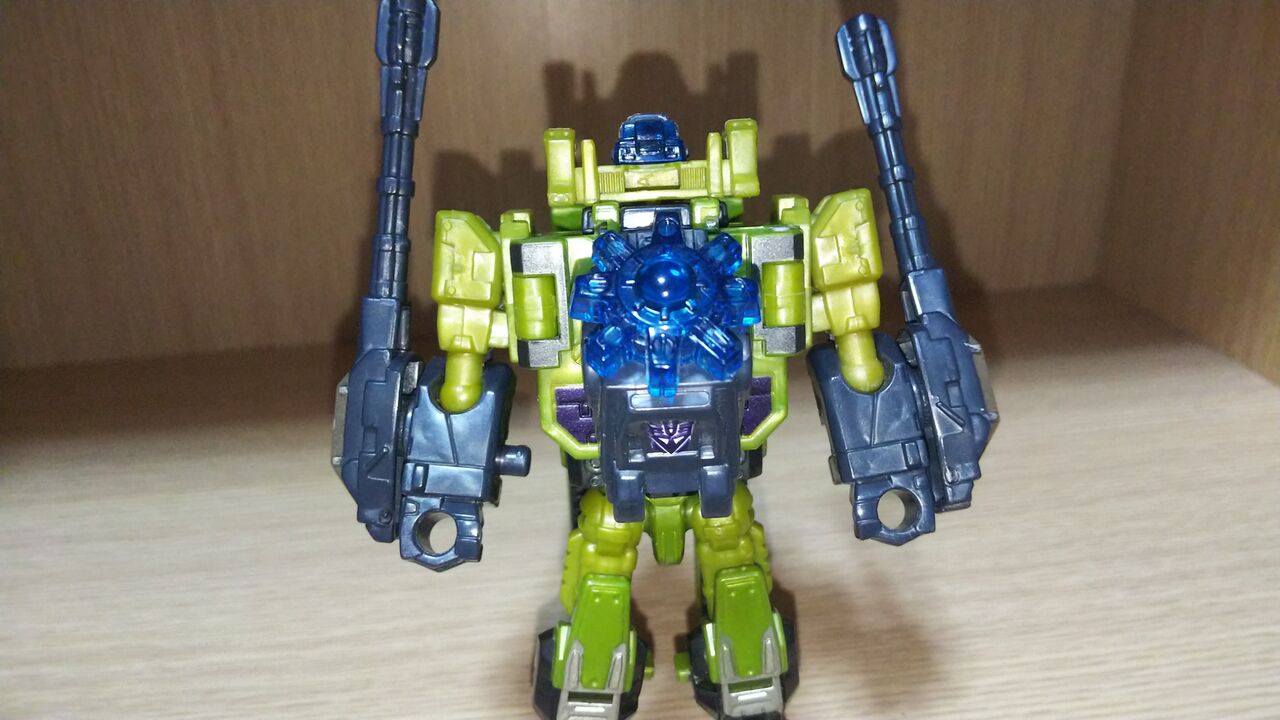 ビークルモードから開始。変形無しでエナジーレーザーを手足に応じた形に折り曲げ車体先端に取り付けるのみ。変形してくれよ。