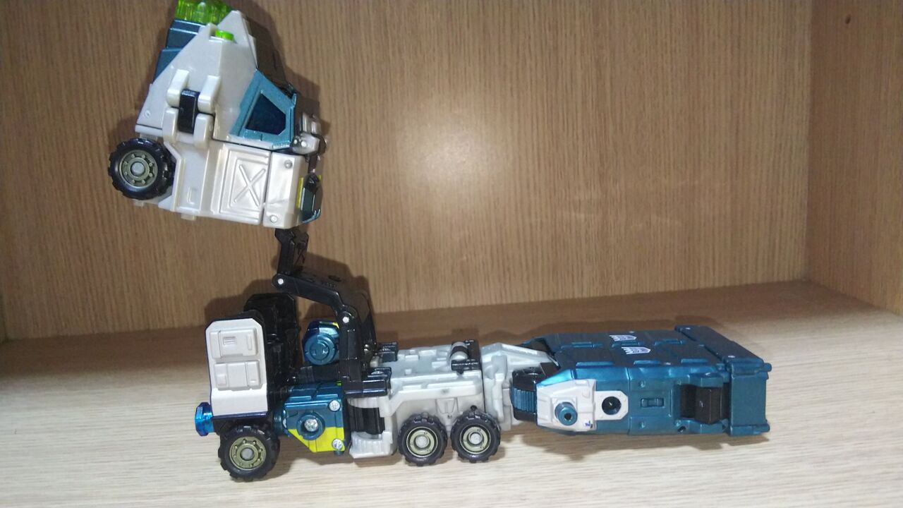 ビークルモードから開始。足を伸ばしてつま先を展開する。
